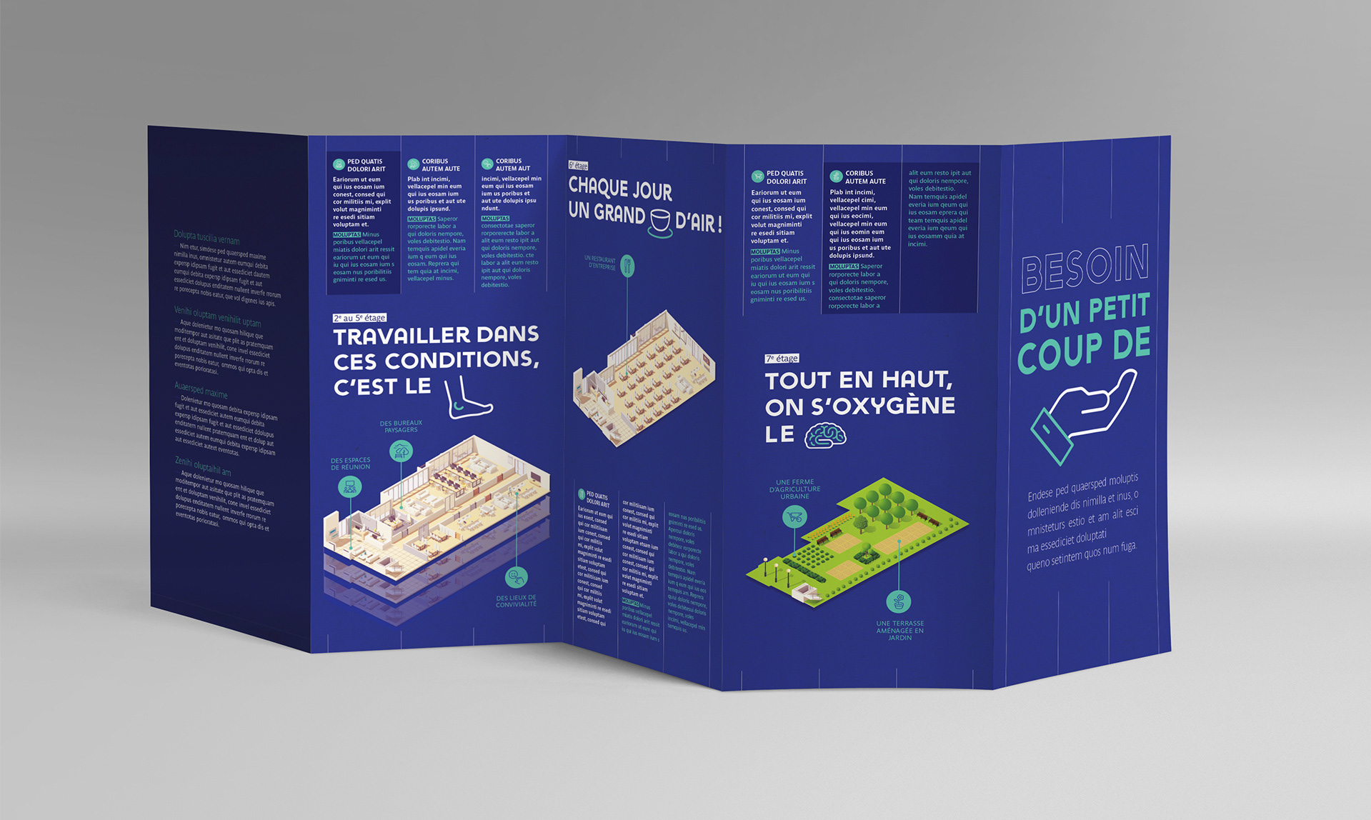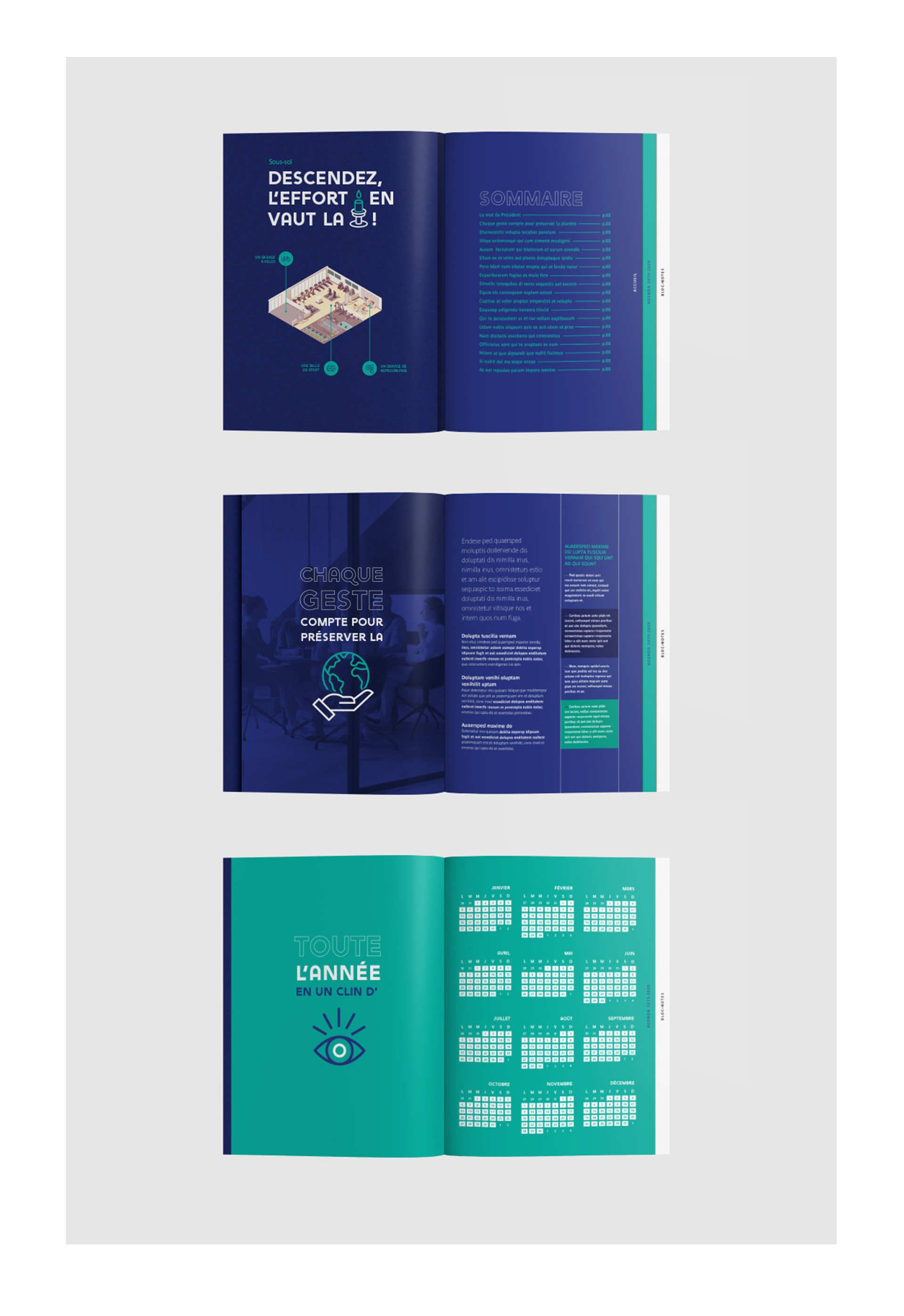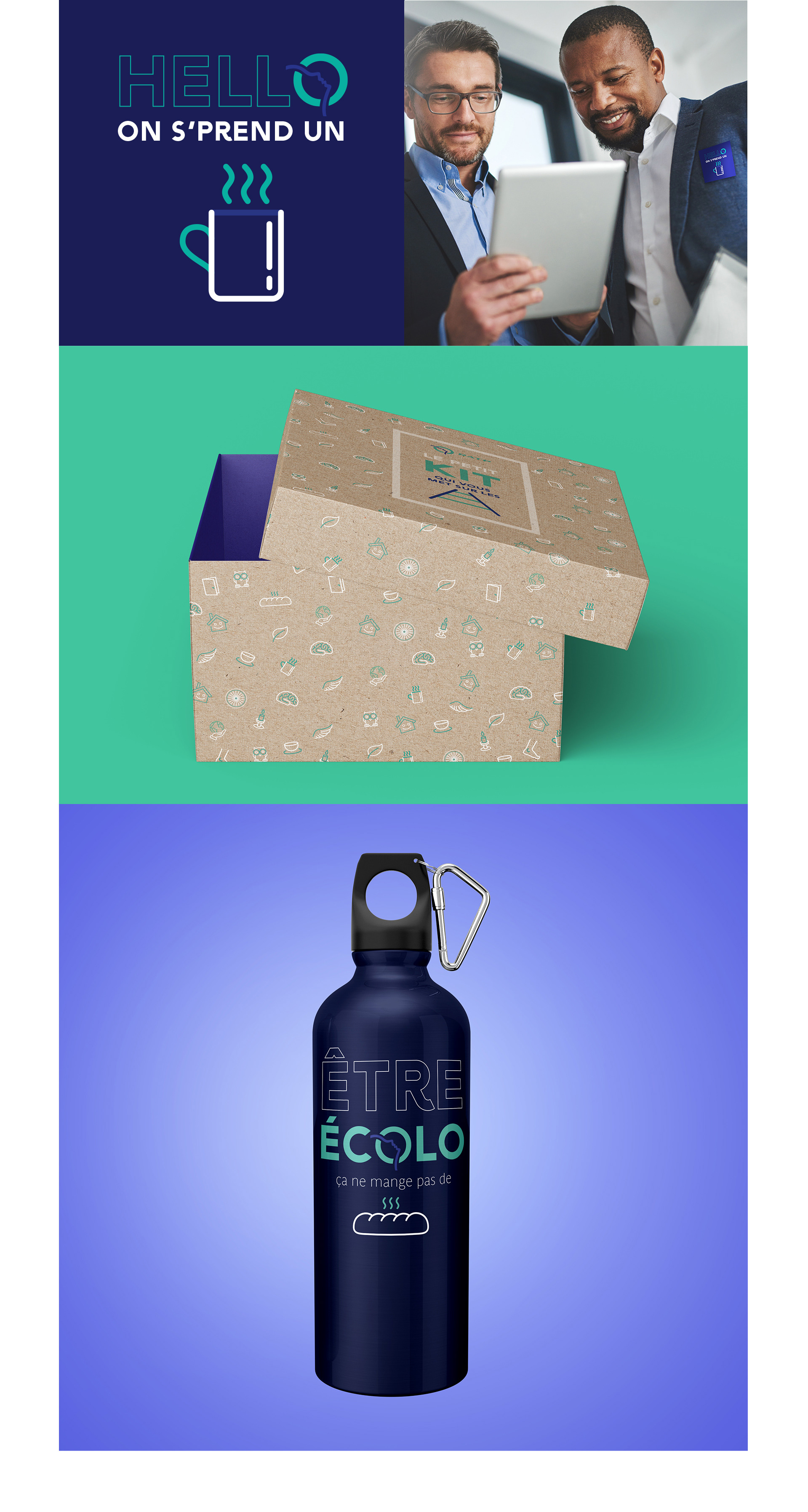 Comment accueillir les nouveaux employés en leur fournissant toutes les infos essentielles sur leur environnement de travail de manière engageante et intuitive ? Création d’un kit de bienvenue au design attractif, où les pictos deviennent un langage à part entière. En rythmant l’information de façon ludique et visuelle, ce dispositif rend la lecture plus vivante et instinctive - ce qui permet de faciliter l’appropriation des lieux, des outils et de la culture d’entreprise.