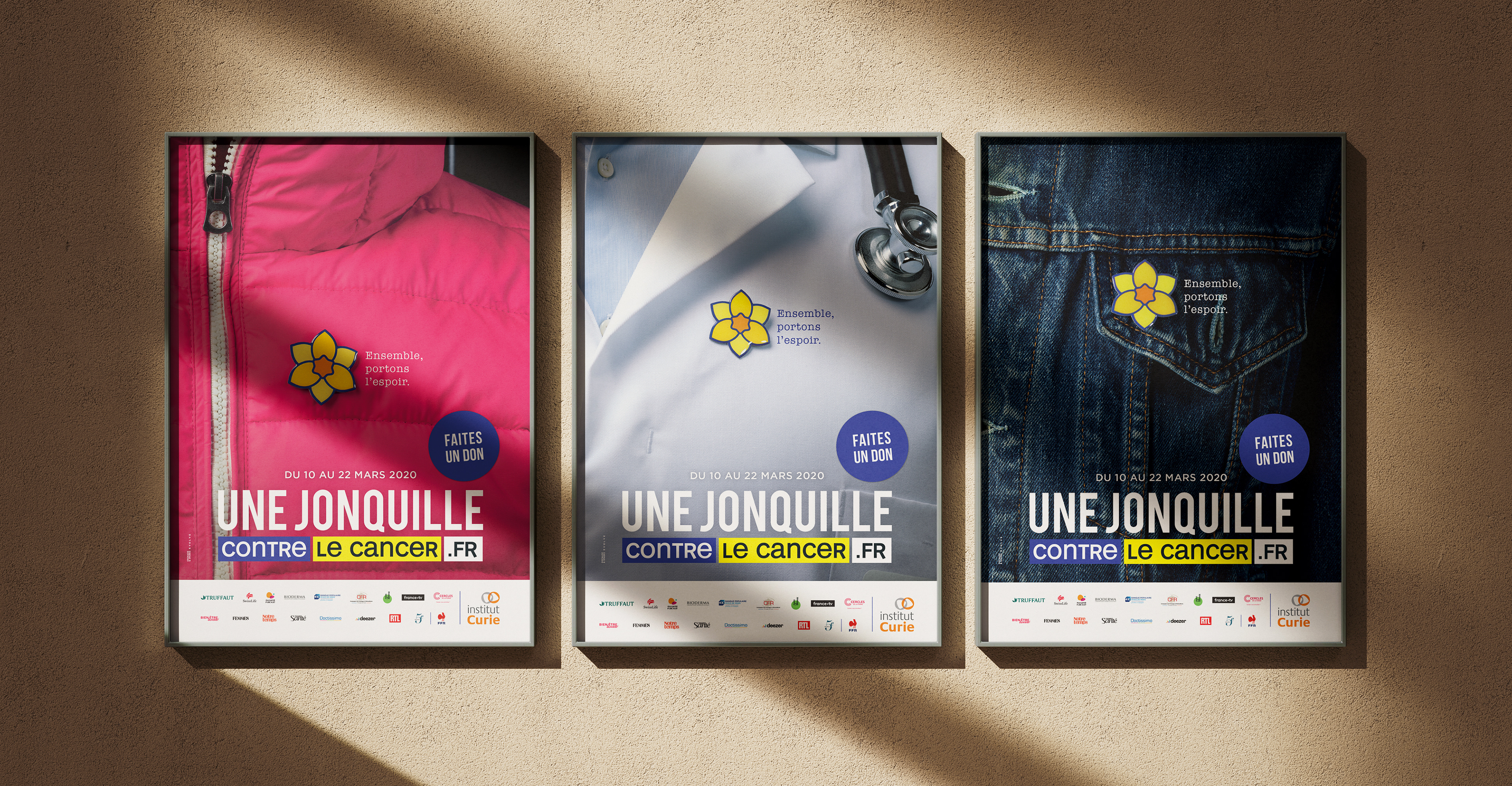Comment insuffler une nouvelle dynamique à la lutte contre le cancer et mobiliser tous les Français en faveur de la recherche ? Création d’un logo iconique plaçant la jonquille au cœur du combat, accompagné d’une campagne 360° engageante qui invite chacun à afficher fièrement ce symbole tout au long de la période de dons.